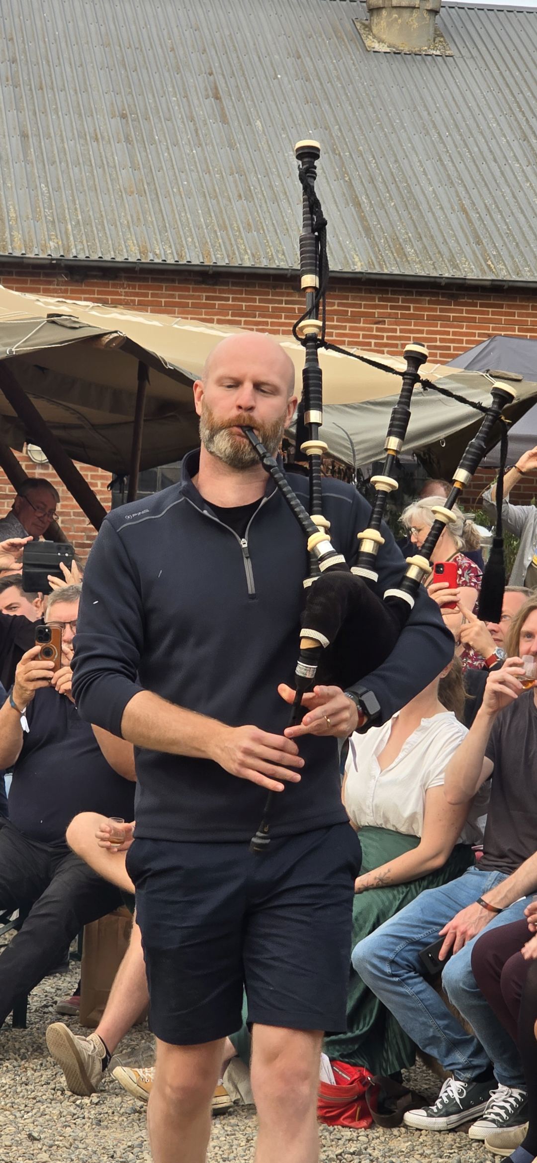 Und es wird schottisch: Andrew Thomson von Elixir Distillers kommt mit Dudelsack - und einer großartigen Darbietung, die alle mitreißt.