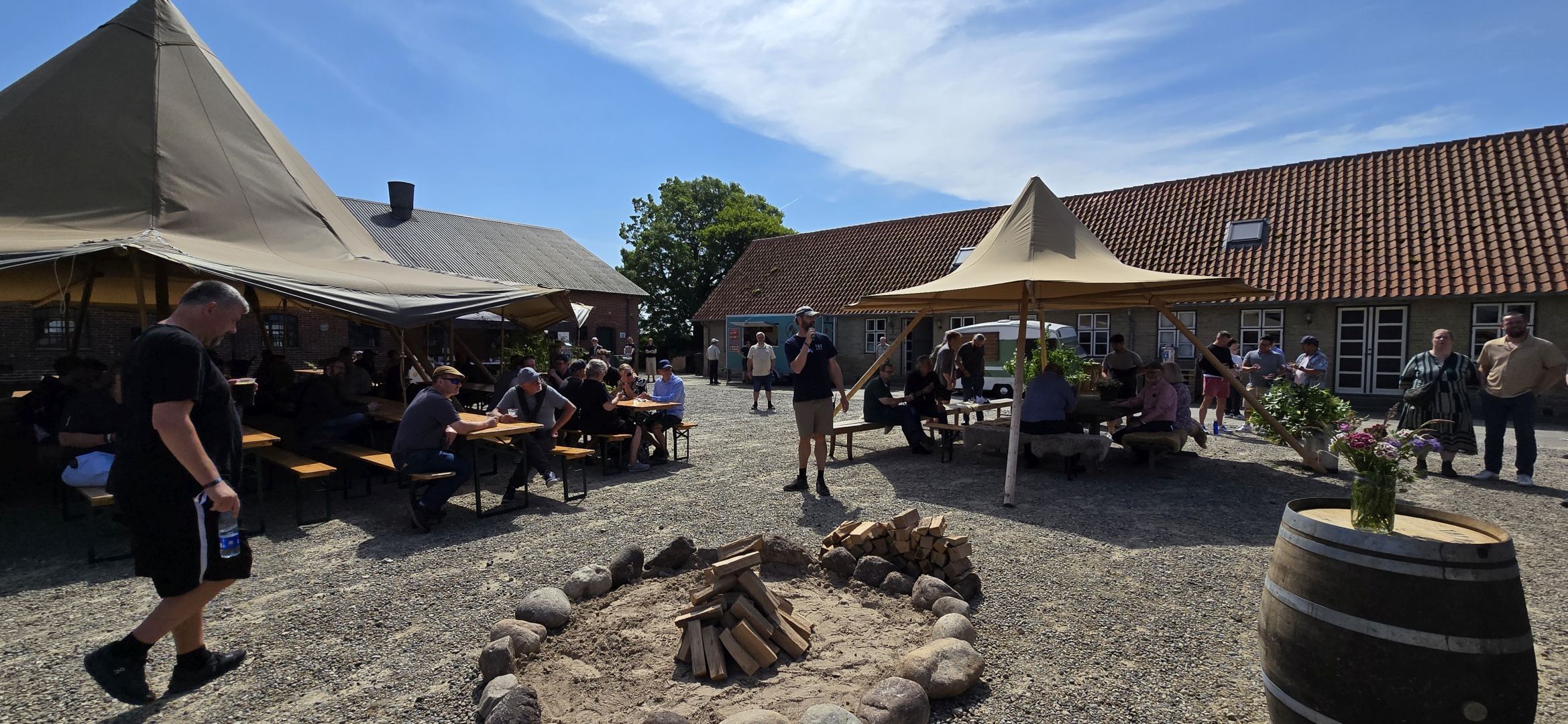 Noch ist nicht offiziell eröffnet, aber einige Besucher sind schon eingetrudelt. Andreas Poulsen, der zweite Gründer, richtet einige Worte an die Gäste.