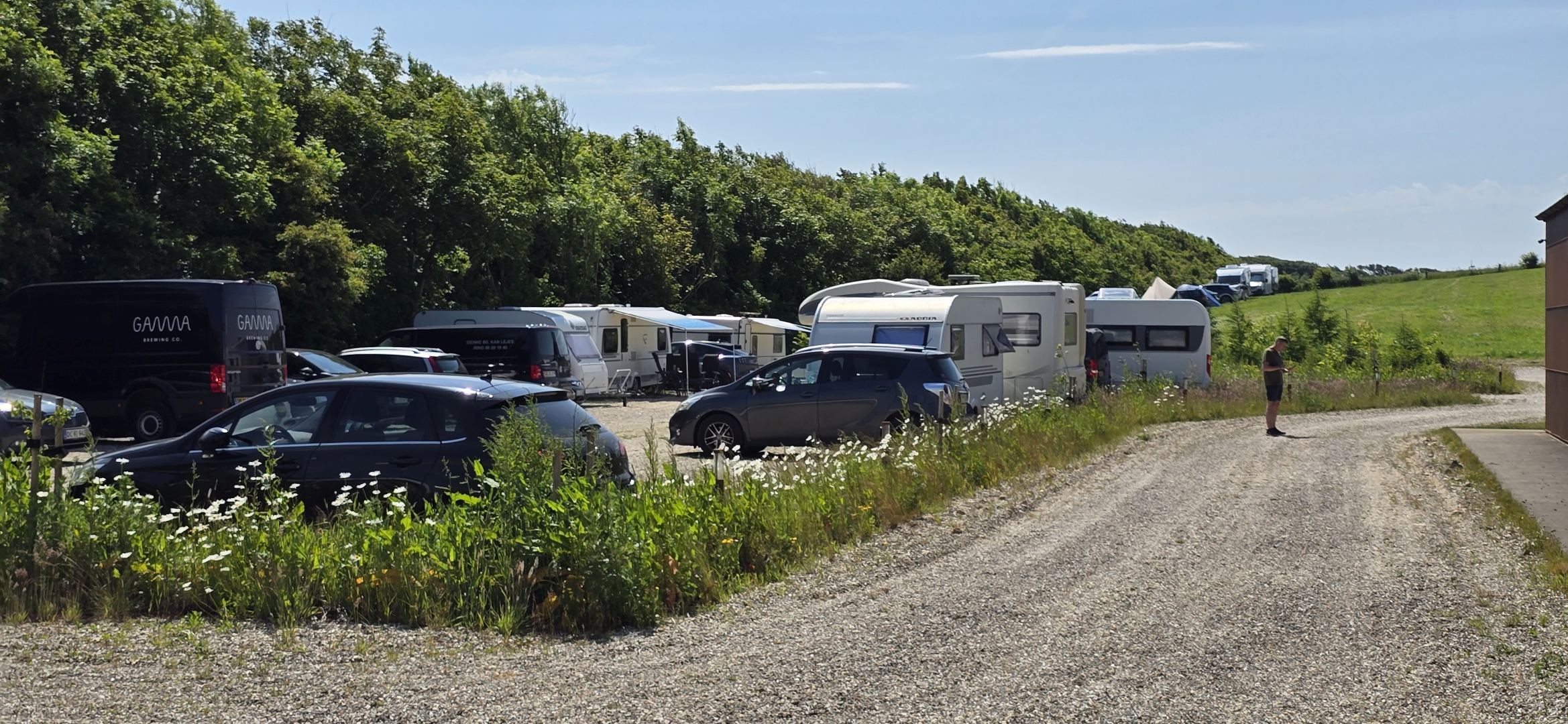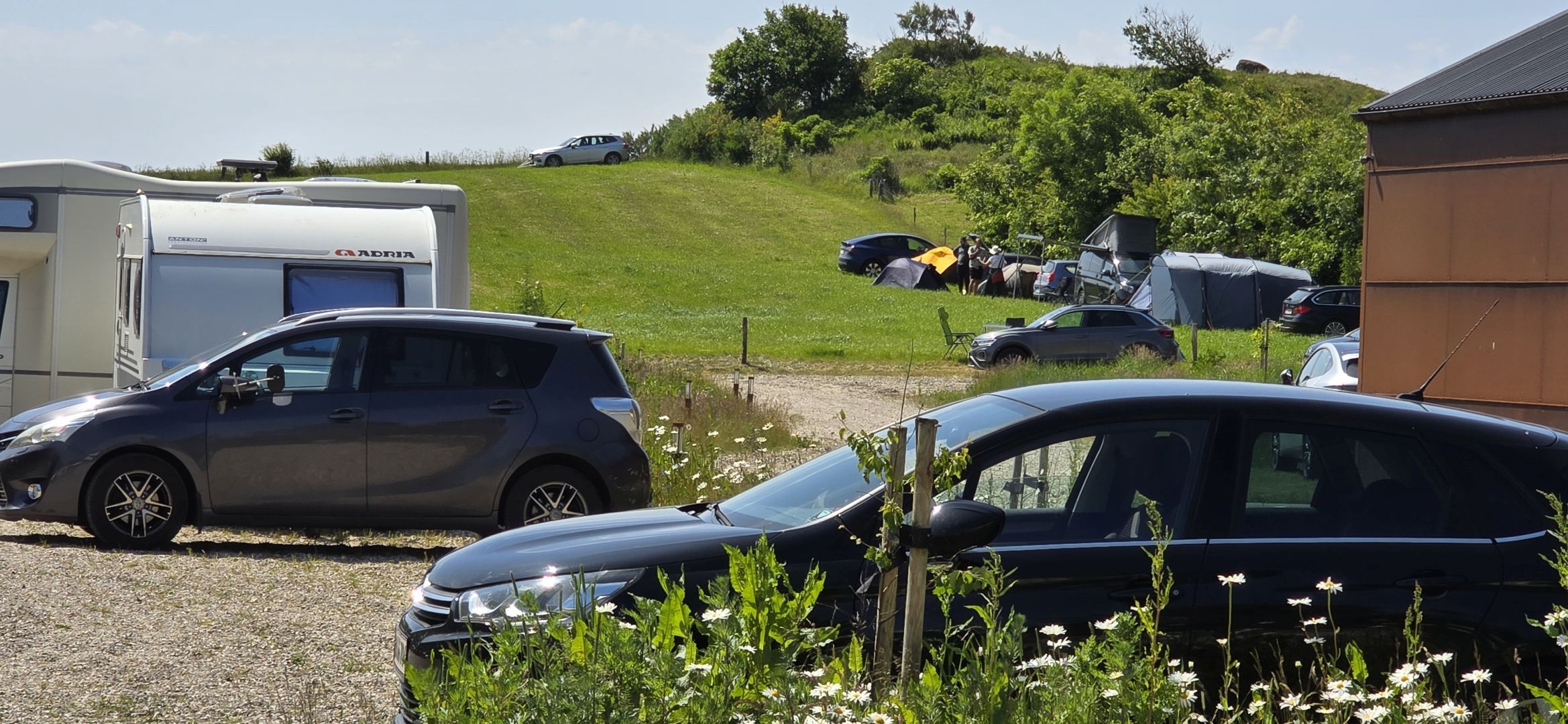 Neben dem Bauernhof war eine Wiese für Camper reserviert. Bei dem Wetter war das sicher ein Genuss...