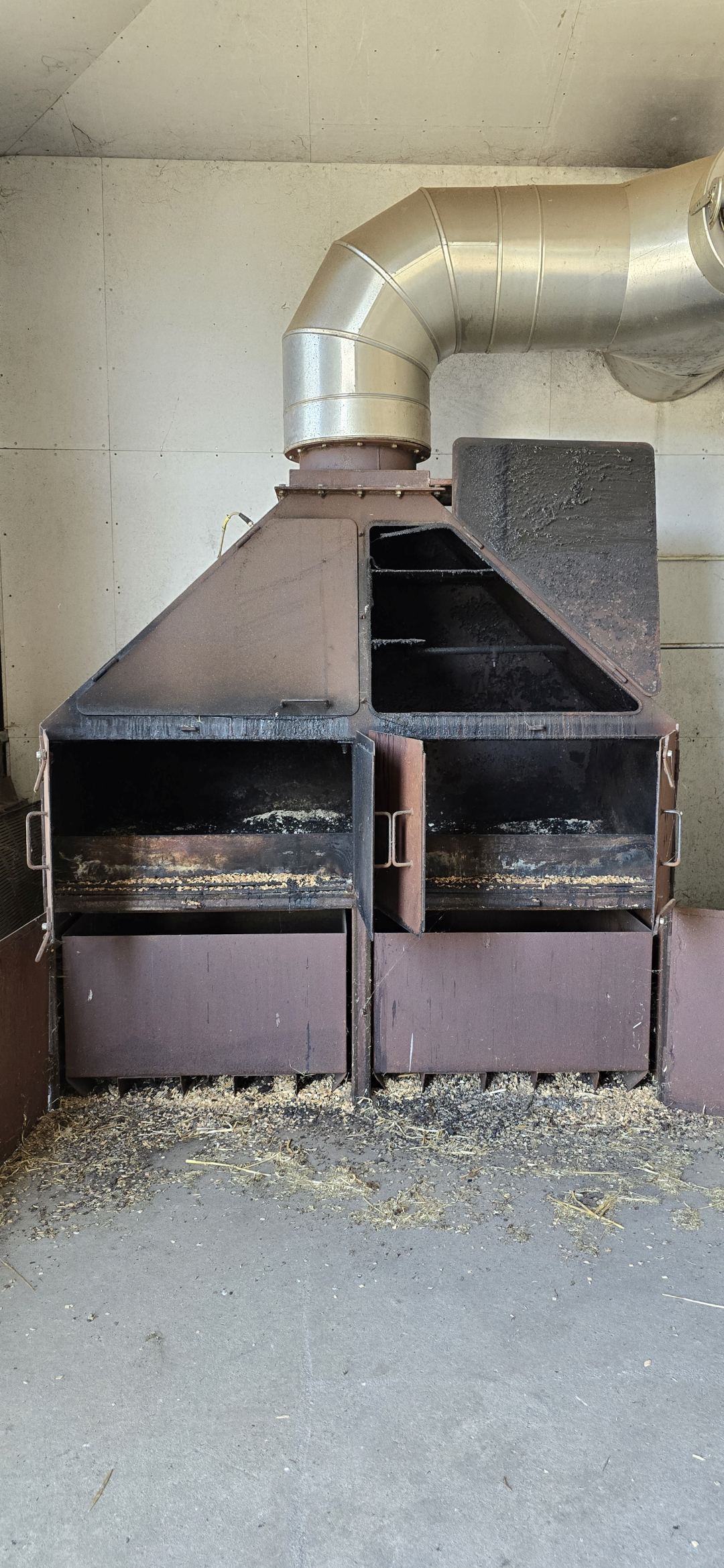 Hier der Ofen, mit dem die Mälztrommeln mit heißer Luft und ggf. mit Rauch befeuert werden