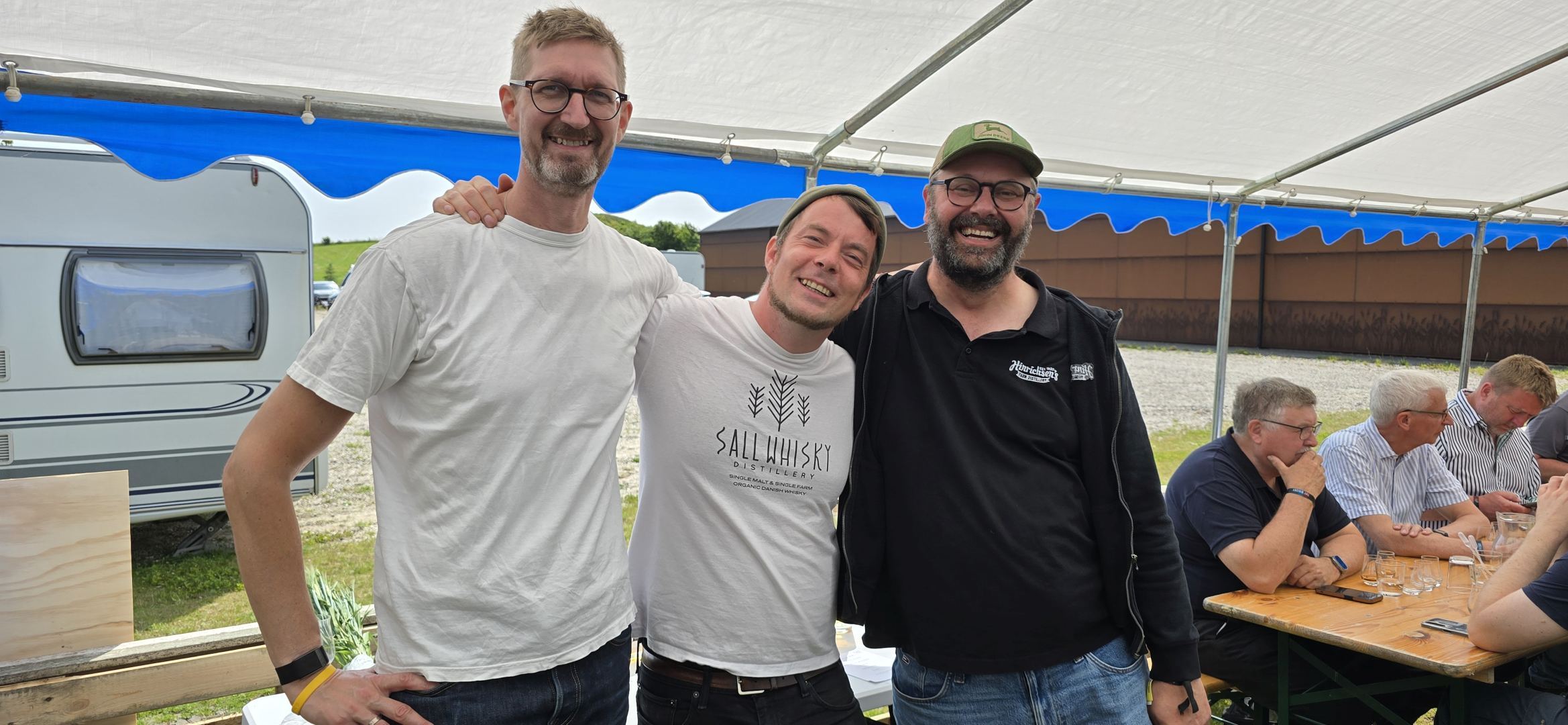 Drei Destillerien beim zweiten Tasting im Zelt: Stauning, Sall und Hinrichsen - sichtlich hat es ihnen dort viel Spaß gemacht