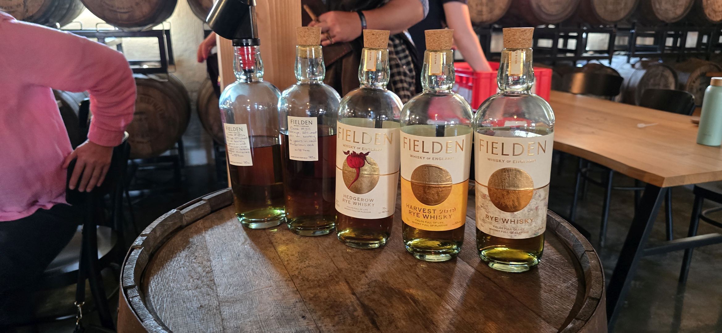 Hier stehen auch die fünf Fassproben für die Gäste - Fasssprobe 1