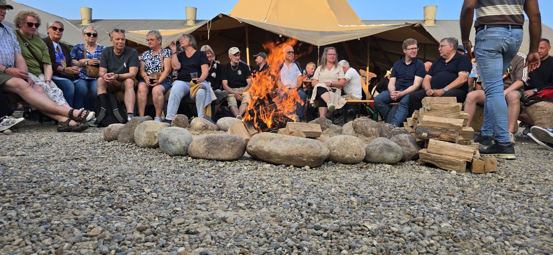 Um 20 Uhr versammelt sich alles um das Lagerfeuer im Hof.