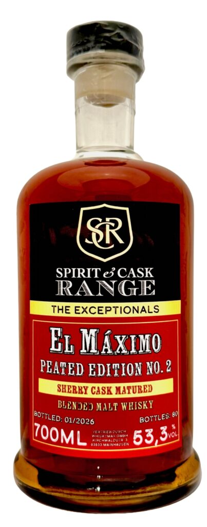 Mit der El Maximo Peated Edition Nr. 2 vertieft die Abfüllungsserie „Spirit & Cask Range – The Exceptionals“ des Importeurs Whiskymax ihre Auseinandersetzung mit torfbetonten Profilen und präsentiert eine Abfüllung, die Intensität und Balance in den Mittelpunkt stellt. Die zweite Peated Edition zeigt einen klar definierten Rauchcharakter, der bewusst mit fruchtiger Süße und medizinischen Noten kontrastiert wird.