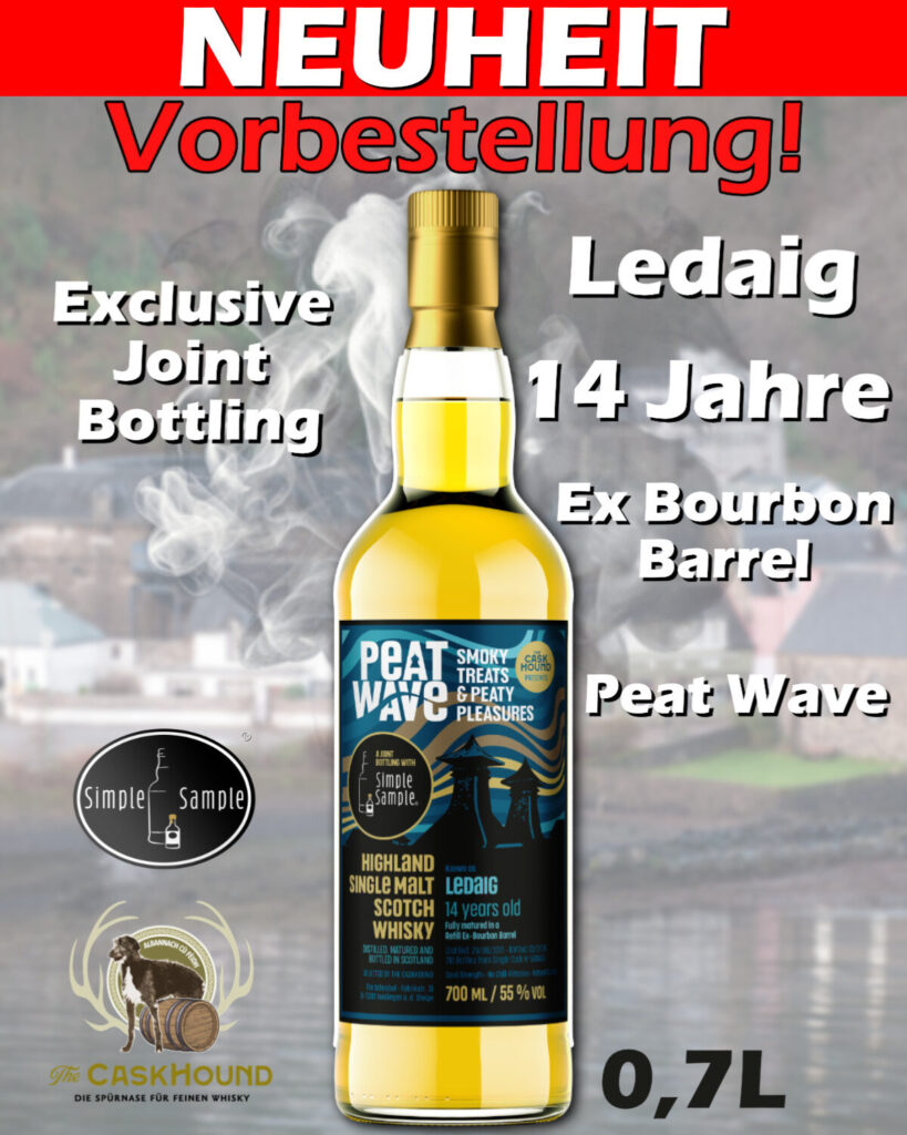 Vorbestellung! – Ledaig 2011/2026 – 14 Jahre – Ex Bourbon Barrel – Peat Wave – exclusive Joint Bottling Simple Sample x The Caskhound – 55,0% – GROßFLASCHE 0,7L