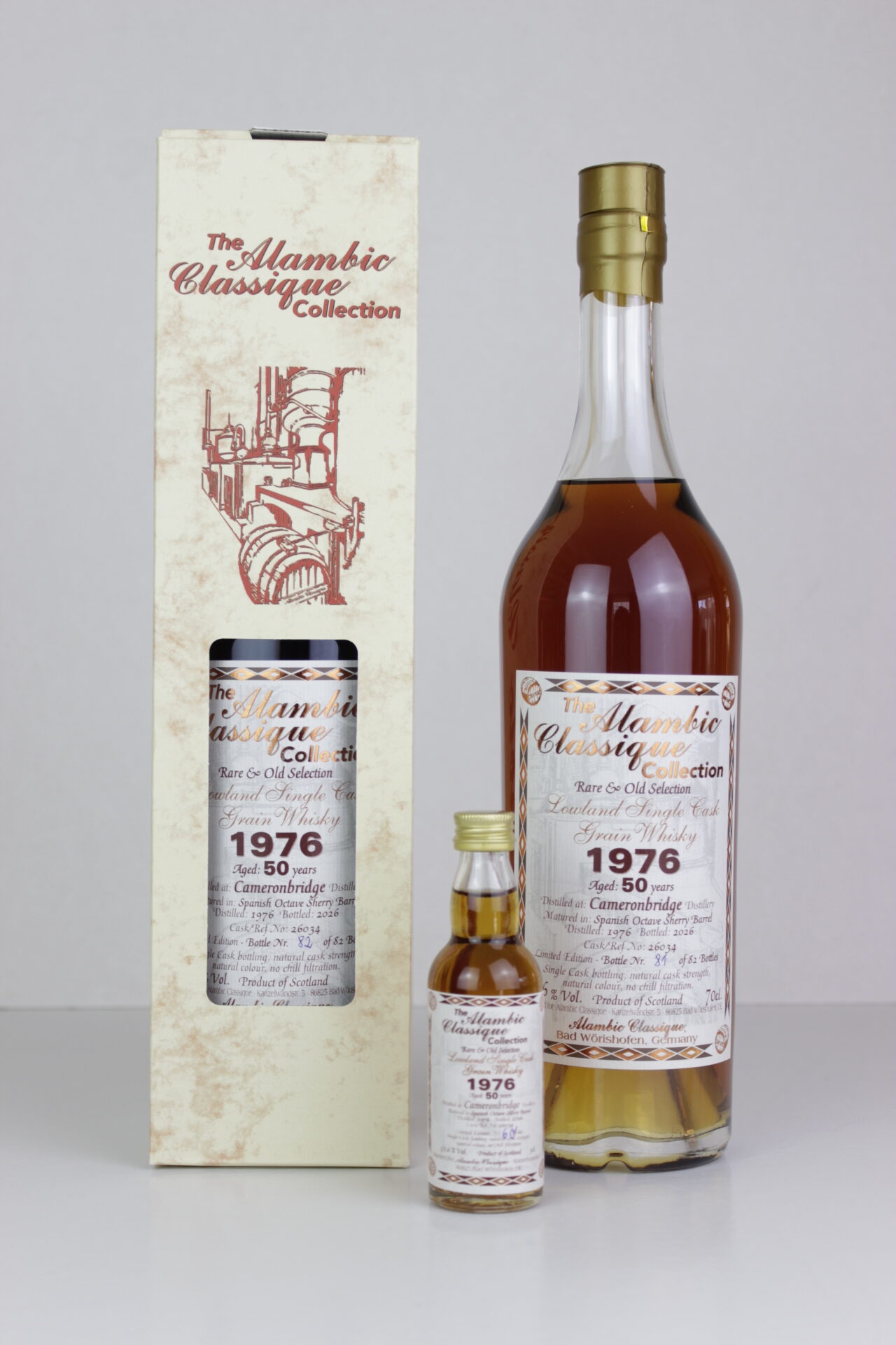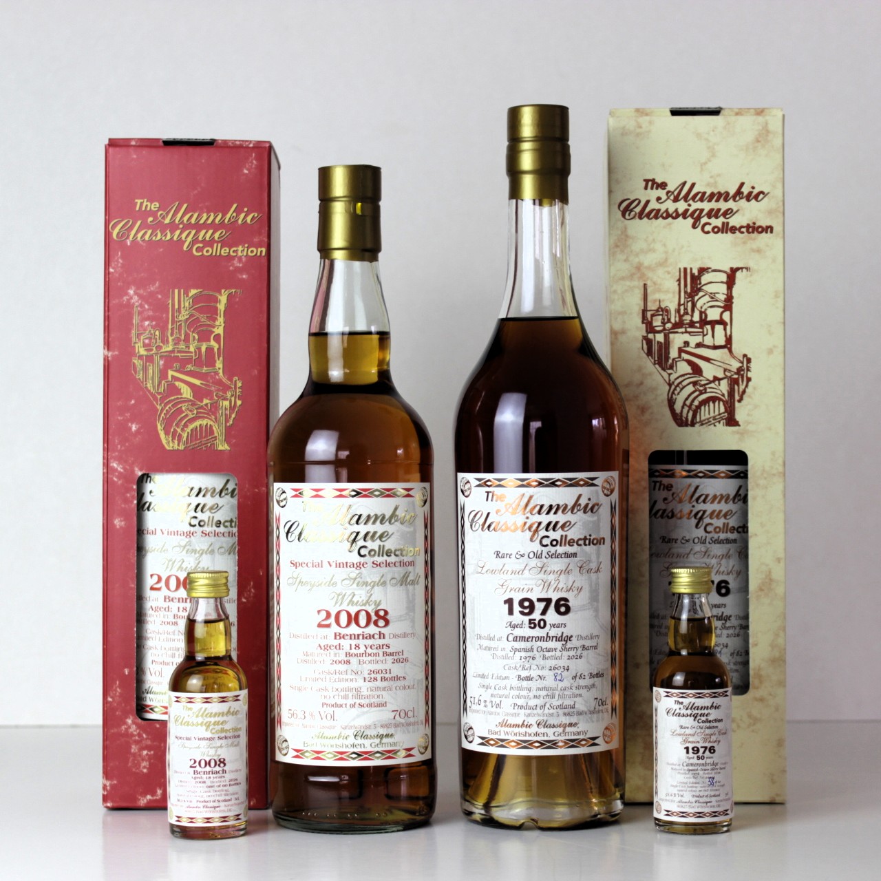 Zwei neue interessante Bottlings, ein Benriach von 2008 mit 18 Jahren und ein Cameronbridge von 1976 mit 50 Jahren werden angeboten. Auch erhältlich dazu sind auf jeweils 60 Stück limitierte Miniaturen, die der unabhängige Abfüller Alambic Classique neben zahlreichen seiner anderen Abfüllungen und Raritäten zur Messe nach Limburg mitbringt. Die Whiskyfair findet am kommenden Wochenende 25/26 April 2026 statt.