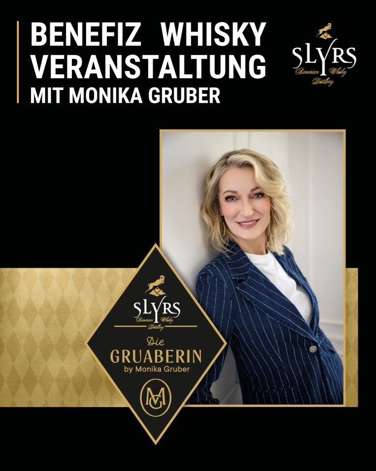 Ein Abend, der verbindet – und Gutes bewirkt. Am 20. November lädt SLYRS gemeinsam mit Monika Gruber zu einem besonderen Benefizabend in die Destillerie ein. In persönlicher Atmosphäre werden 80 streng limitierte, handsignierte 0,35-Liter-Flaschen aus ihrem eigenen Fass übergeben – inklusive Erinnerungsfoto mit der „Gruaberin“. Das Beste daran: Der gesamte Reinerlös kommt dem Alten- und Pflegeheim St. Elisabeth in Neuhaus am Schliersee zugute – direkt in unserer Nachbarschaft. Gemeinsam genießen, lachen und helfen – für einen guten Zweck, der wirklich nah ist.